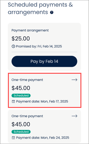 - Refer to How do I view my upcoming scheduled payments in the Customer Portal? for guidance in viewing any future scheduled payments.