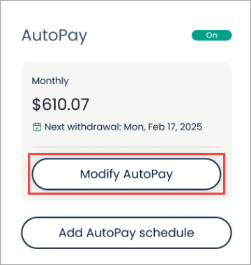 An AutoPay schedule that is being set up, modified, or disabled.