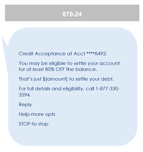 - Senior Collect Settlement Offer Text Message with Mini-Miranda